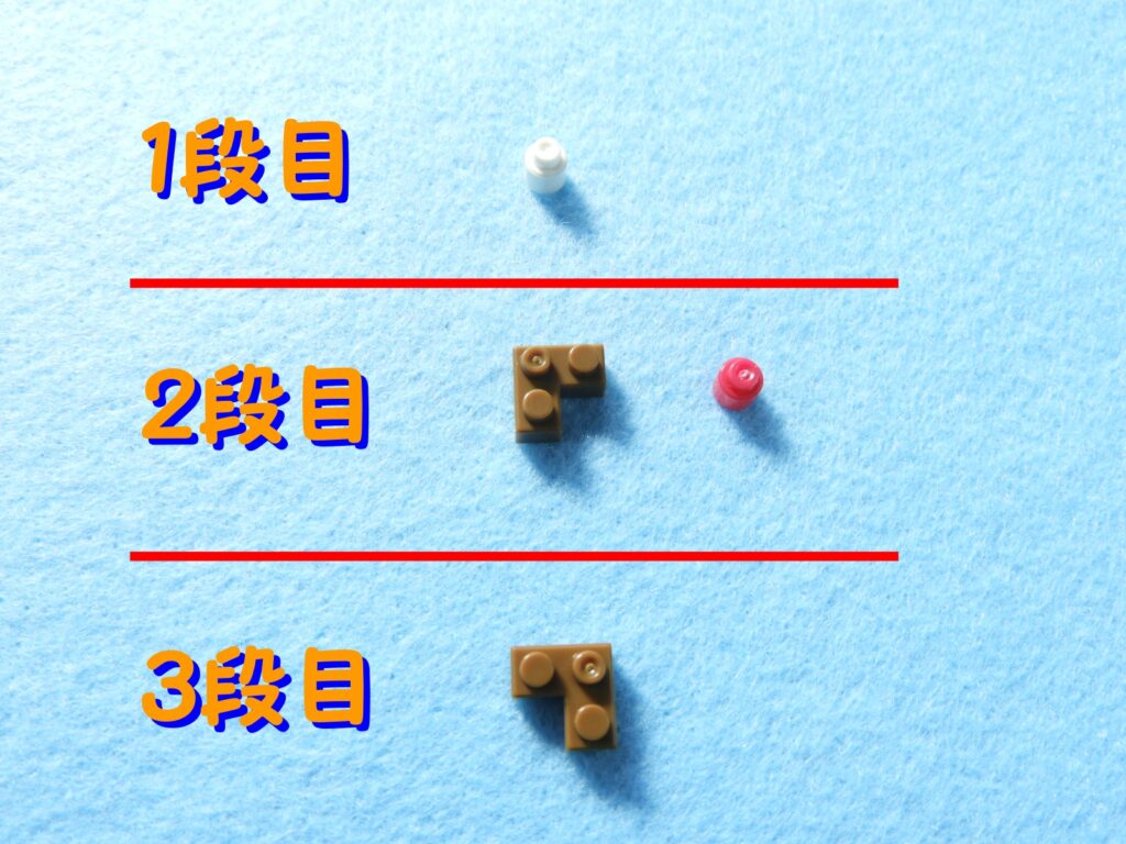 3.最後に、4段目のブロック2個を取り付けると工程1番は完成します。