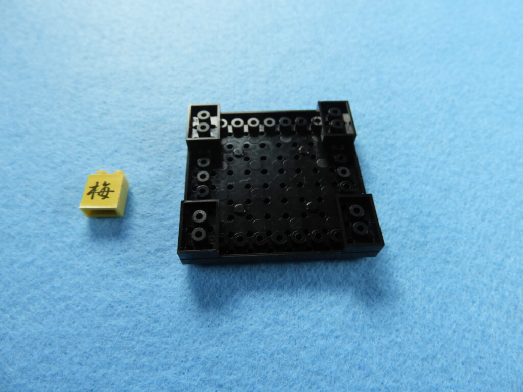 それでは工程8番で使用するブロックを並べます。説明書の「梅」は、黄色ブロックに貼り付けるので切り取っておきましょう。貼らない方はそのままでOKです。1.黄色ブロック3個を組み立てたら、説明書の「梅」を切り取ってノリなどで貼り付けます。黒板には、黒ブロック4個を取り付けます。