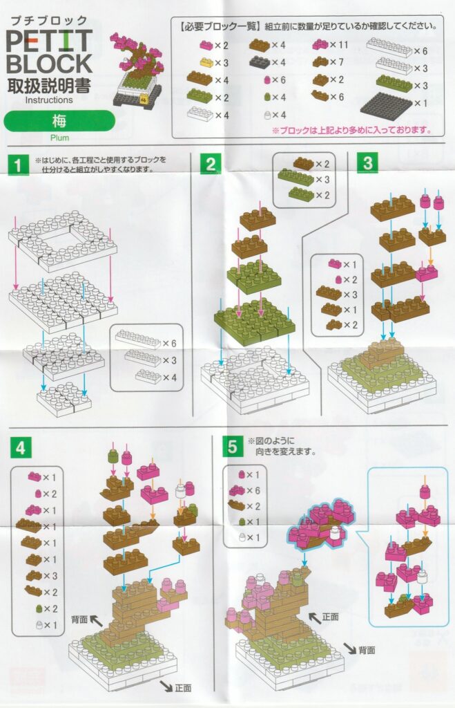 プチブロック 梅の説明書はこちら、工程1番~工程5番まで工程6番~工程9番まで