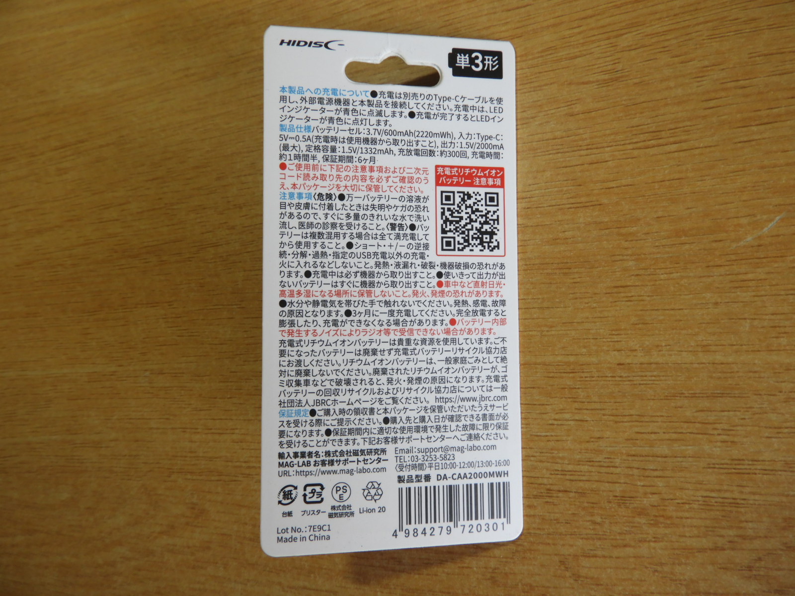 USB Type-C充電池は、ダイソーの電池コーナーで販売されていました。そして、パッケージはこちら、