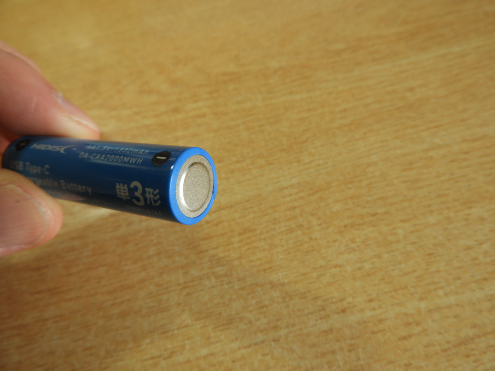 パッケージから取り出すとこんな感じです。当然普通の単三乾電池と同じ大きさですね。