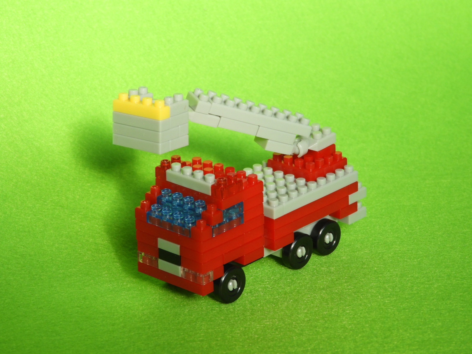 1.並べたブロックを組み立てます。長い(1×4)のブロックの下に小さいブロックを取り付けます。