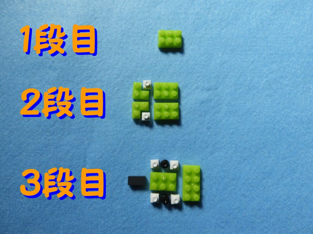 2.上記で組み立てたブロックの上に、1段目・2段目のブロックをのせます。これで工程3番は完成しました。