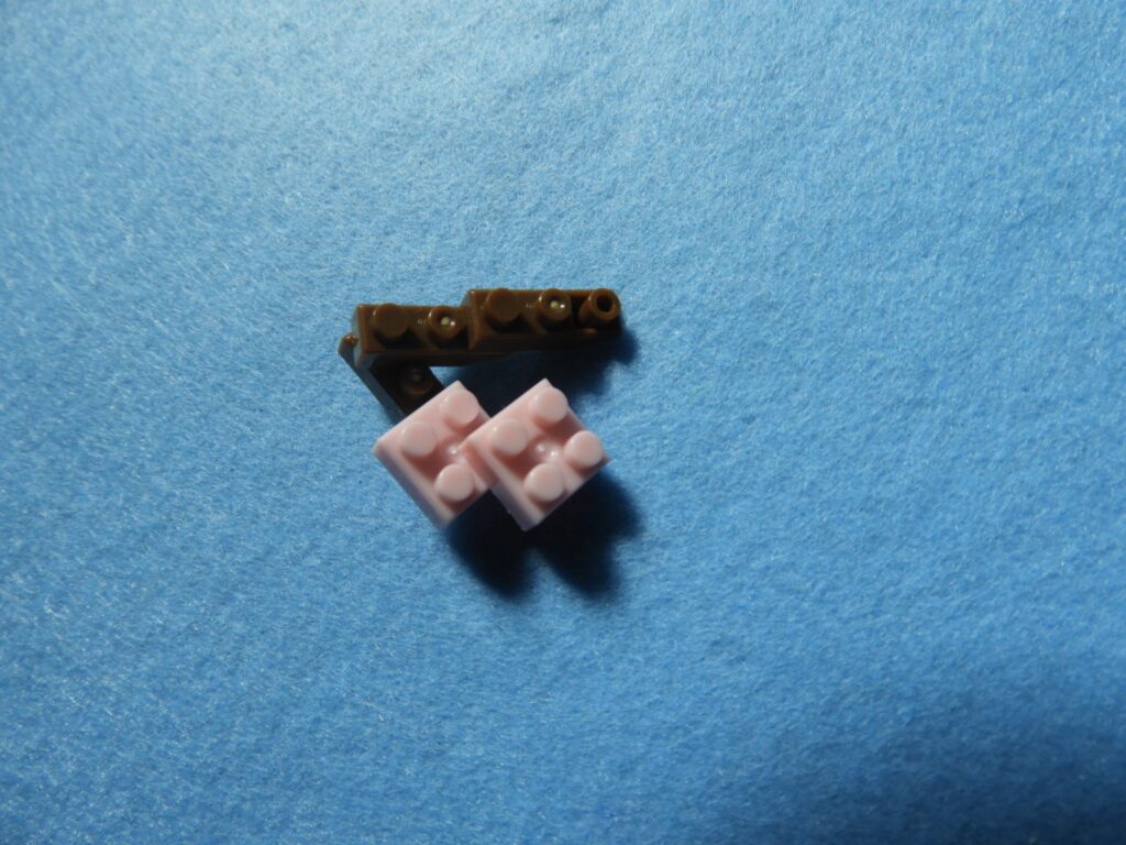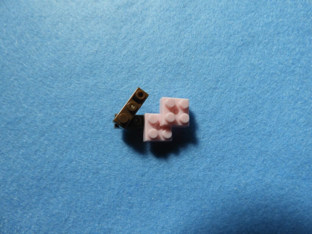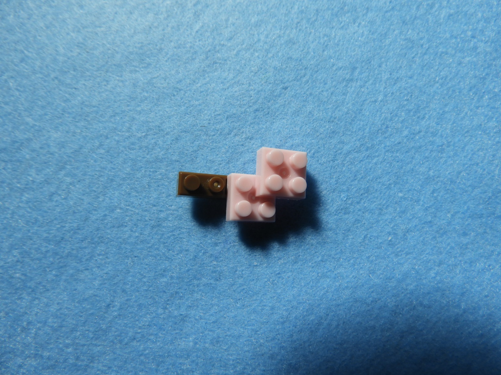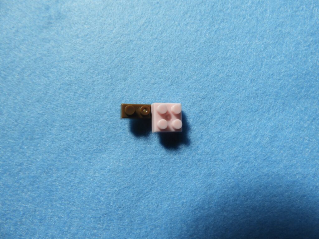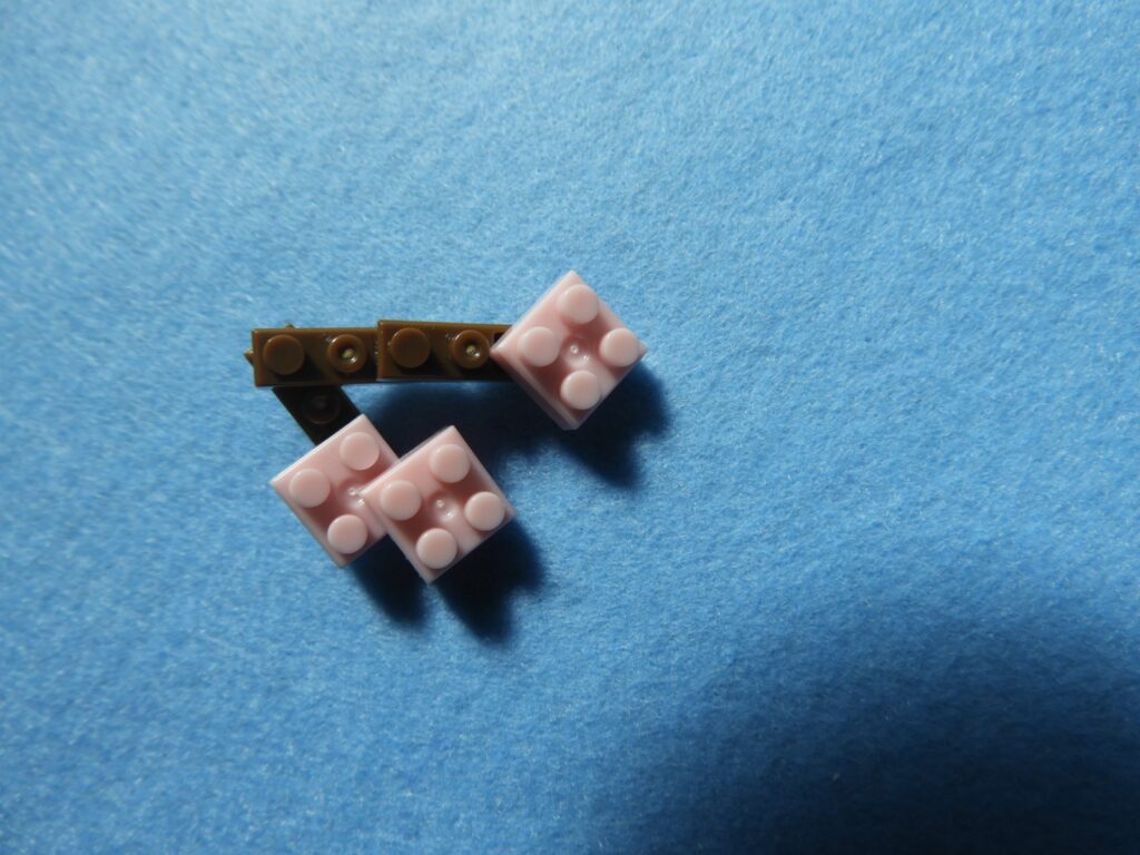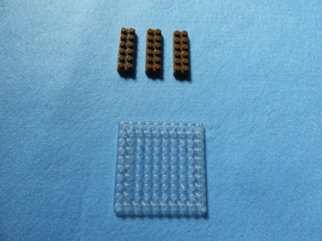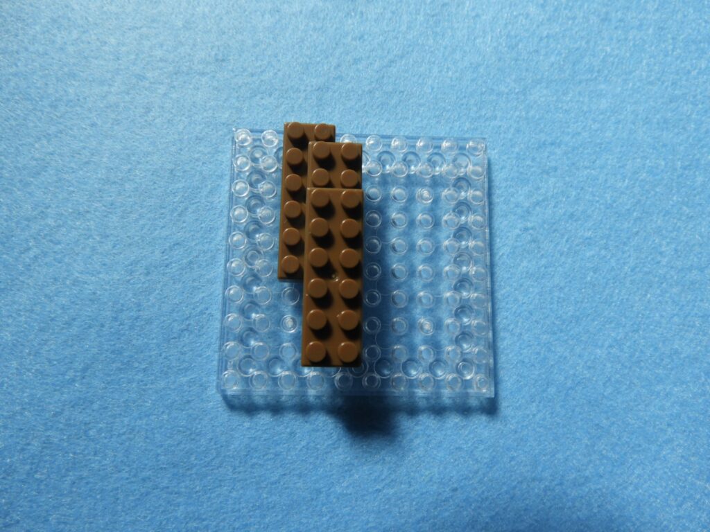 1.透明なプレートの上に、茶色ブロックを3個のせるだけです。