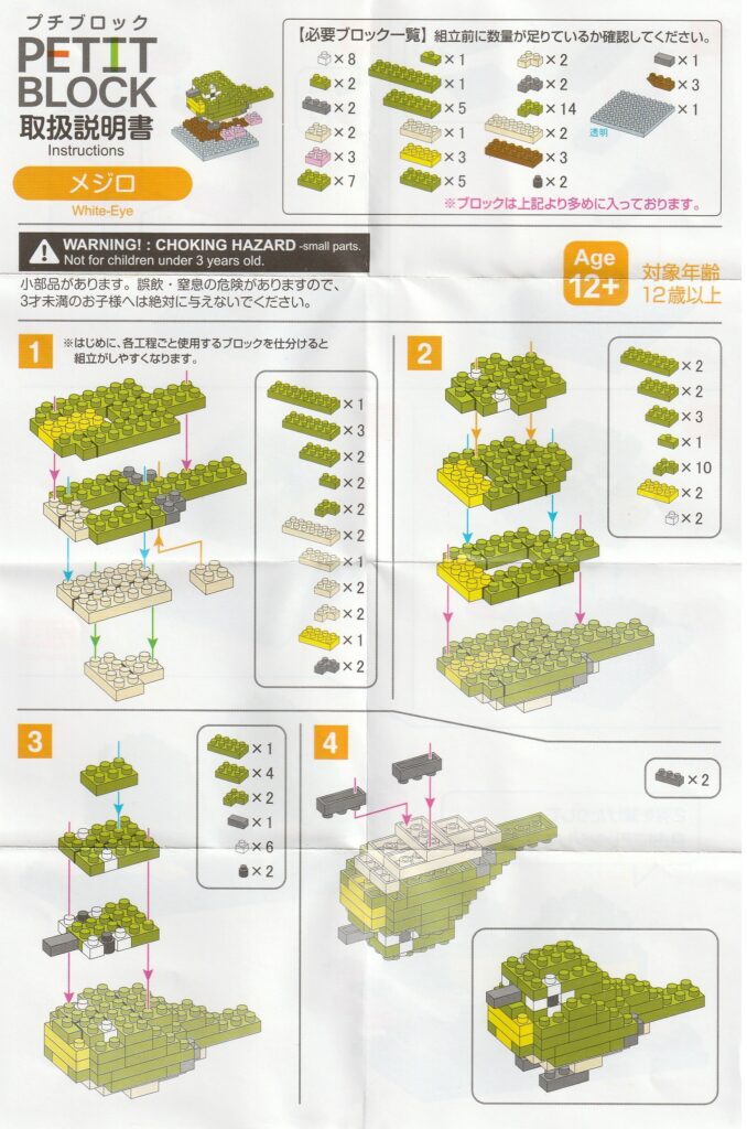 以上、ダイソーのプチブロック★とりのなかま1 メジロの組み立て方でした。