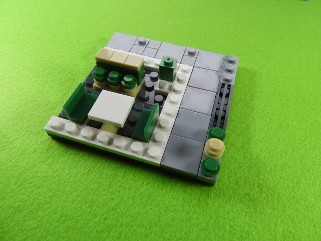 1.用意したブロックをのせるとこんな感じになります。店内の椅子とテーブルになりました。