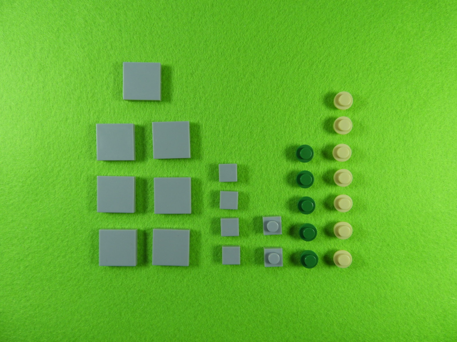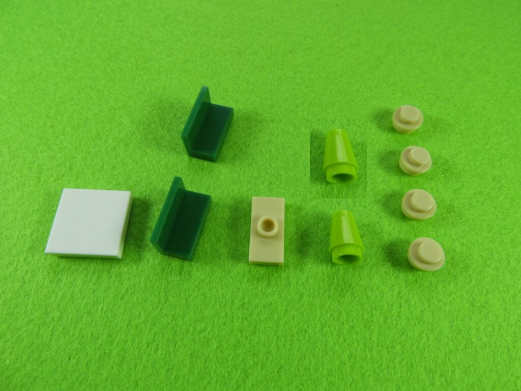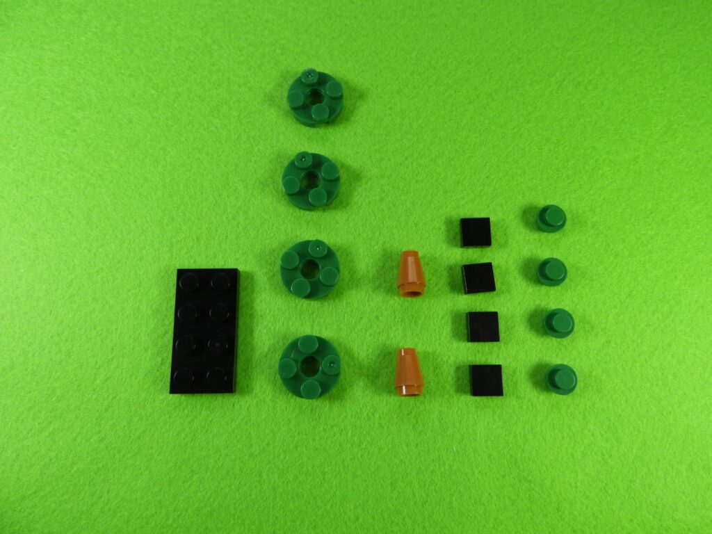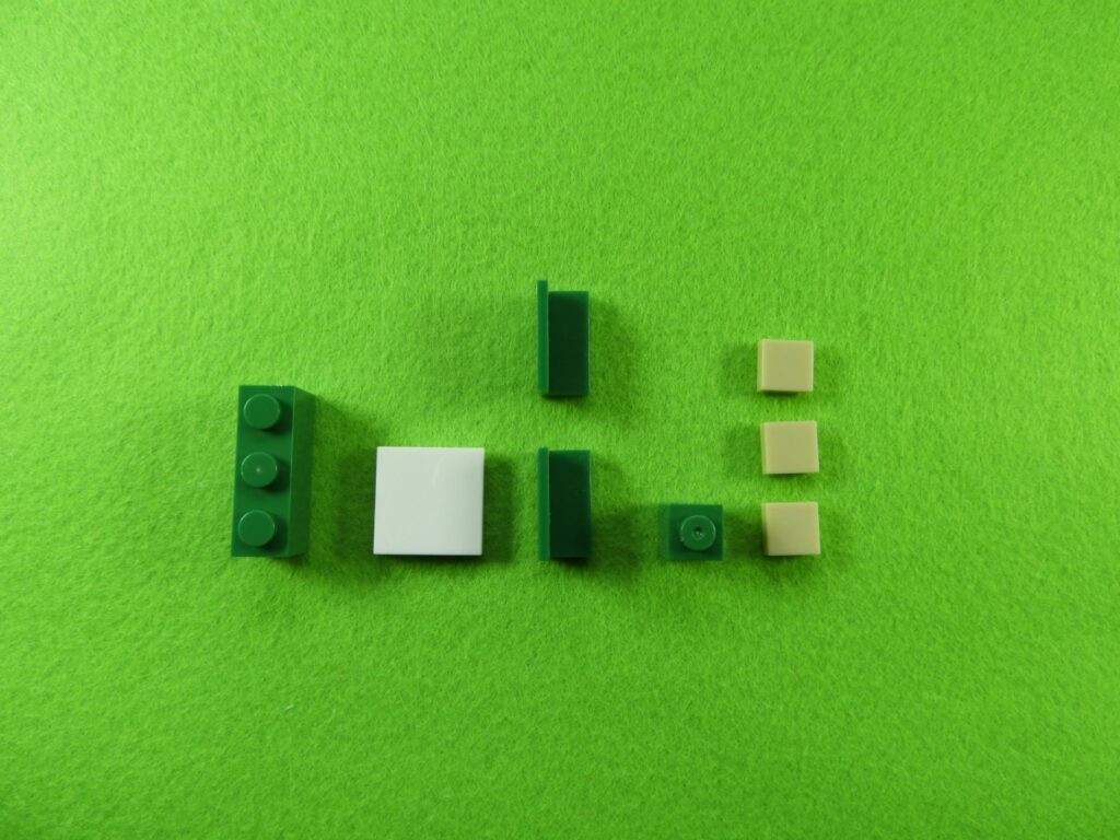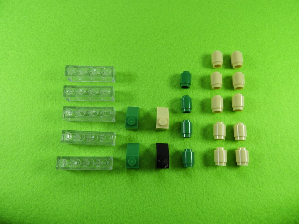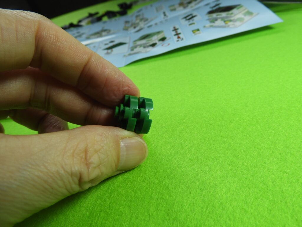 1.木を2セット作ります。木のてっぺんには小さい緑ブロックがついていますが、これがめちゃくちゃきついんですよね。かなり手こずりました。うまく取り付けできない方は、「緑ブロックがはまらないときの手順」を参照してくださいませ。