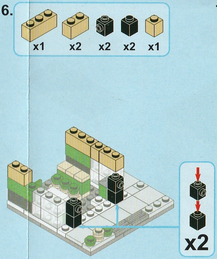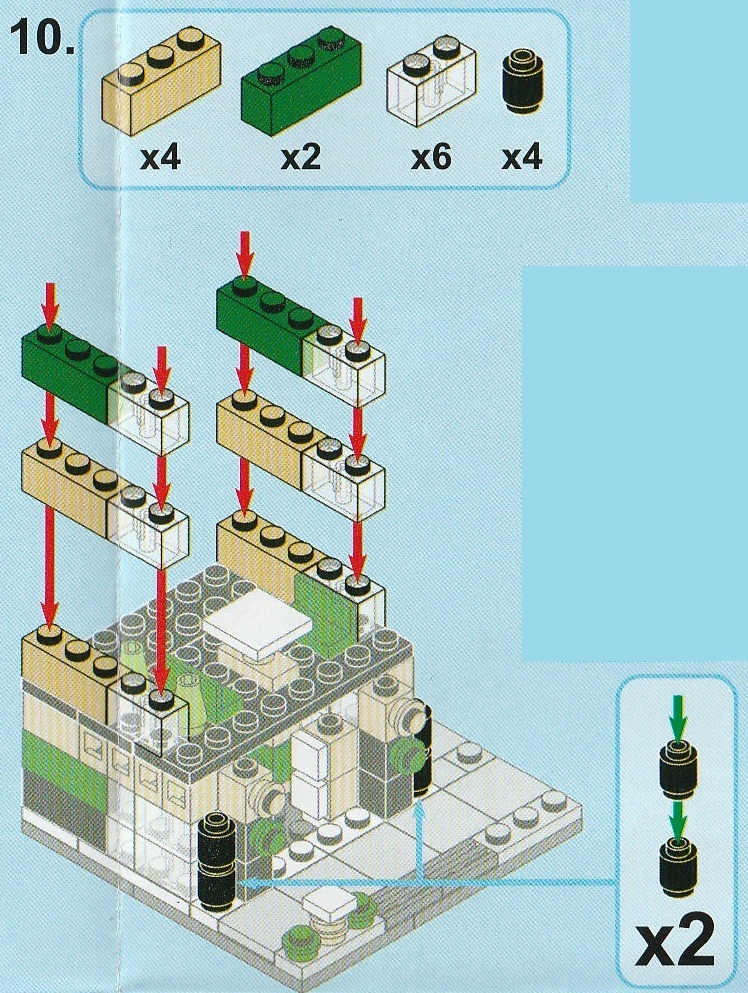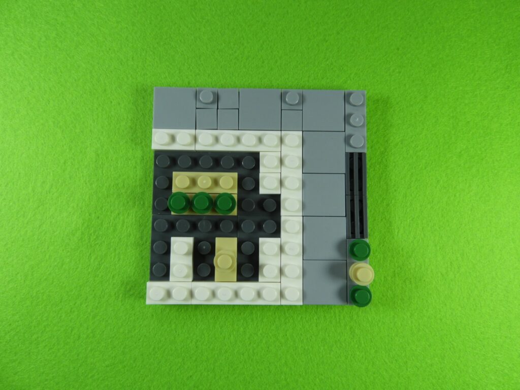 1.工程10番も順番にブロックをのせていくと完成します。黒ブロックは、建物正面の両脇に取り付けます。