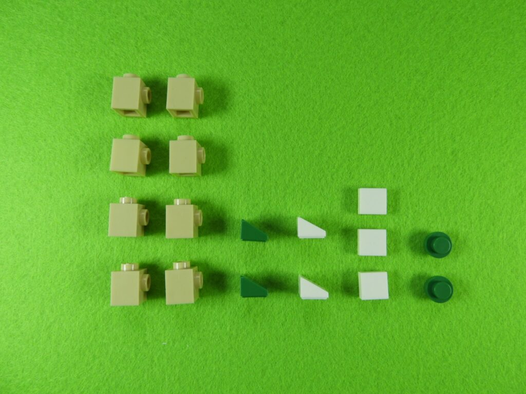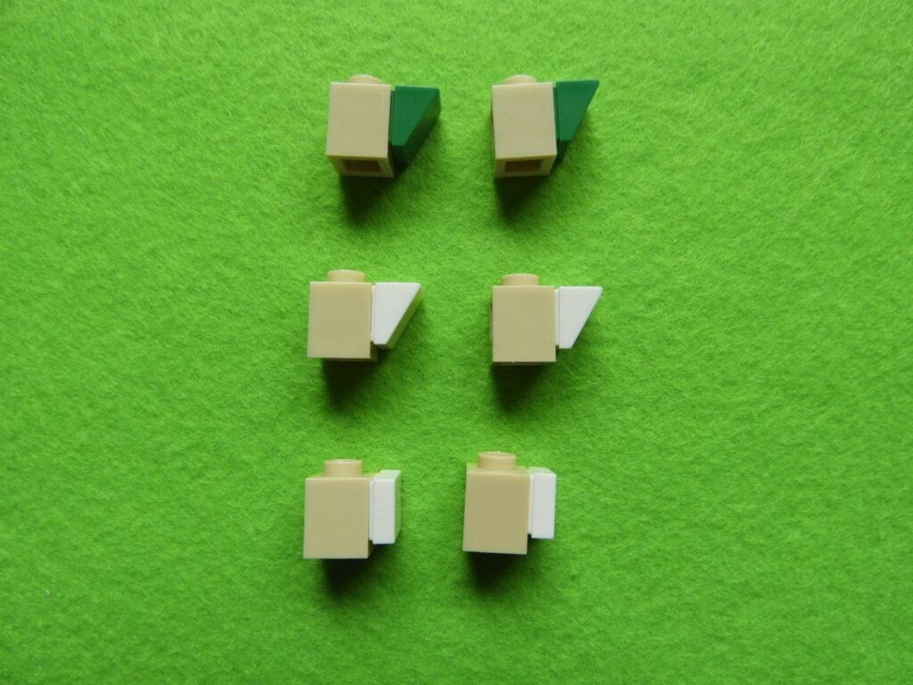 1.先に、斜めブロックと正方形のブロックを左側6個のベージュブロックに取り付けます。