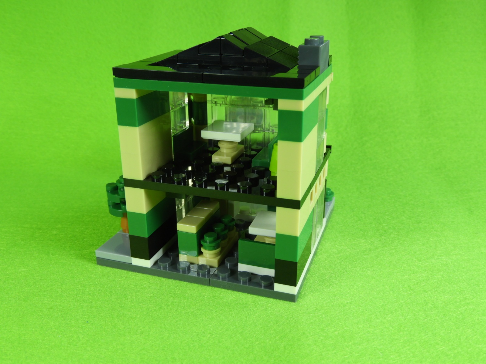 組み立てたカフェを前後から撮影してみました。後ろ側から見ると店内の様子がわかりますよ♪