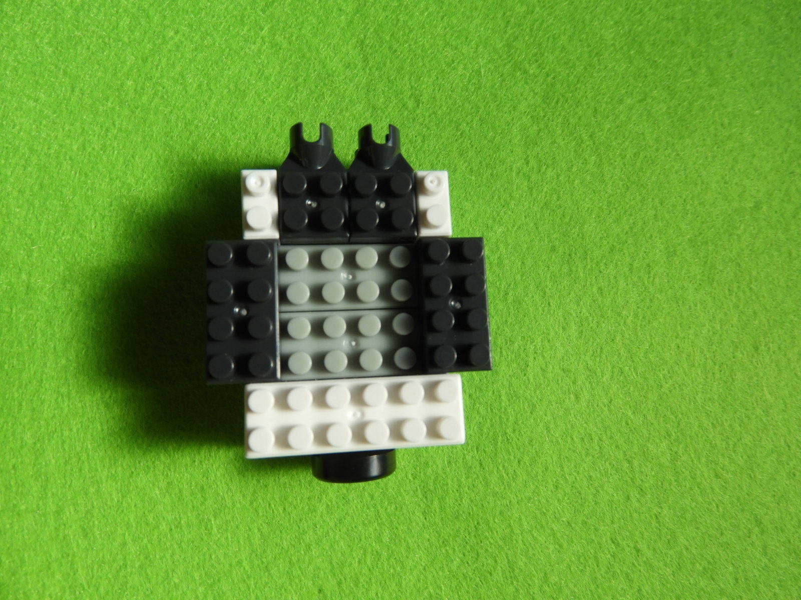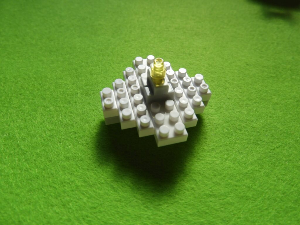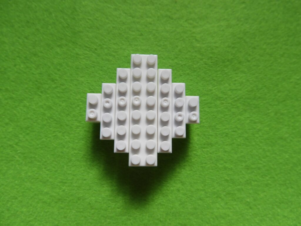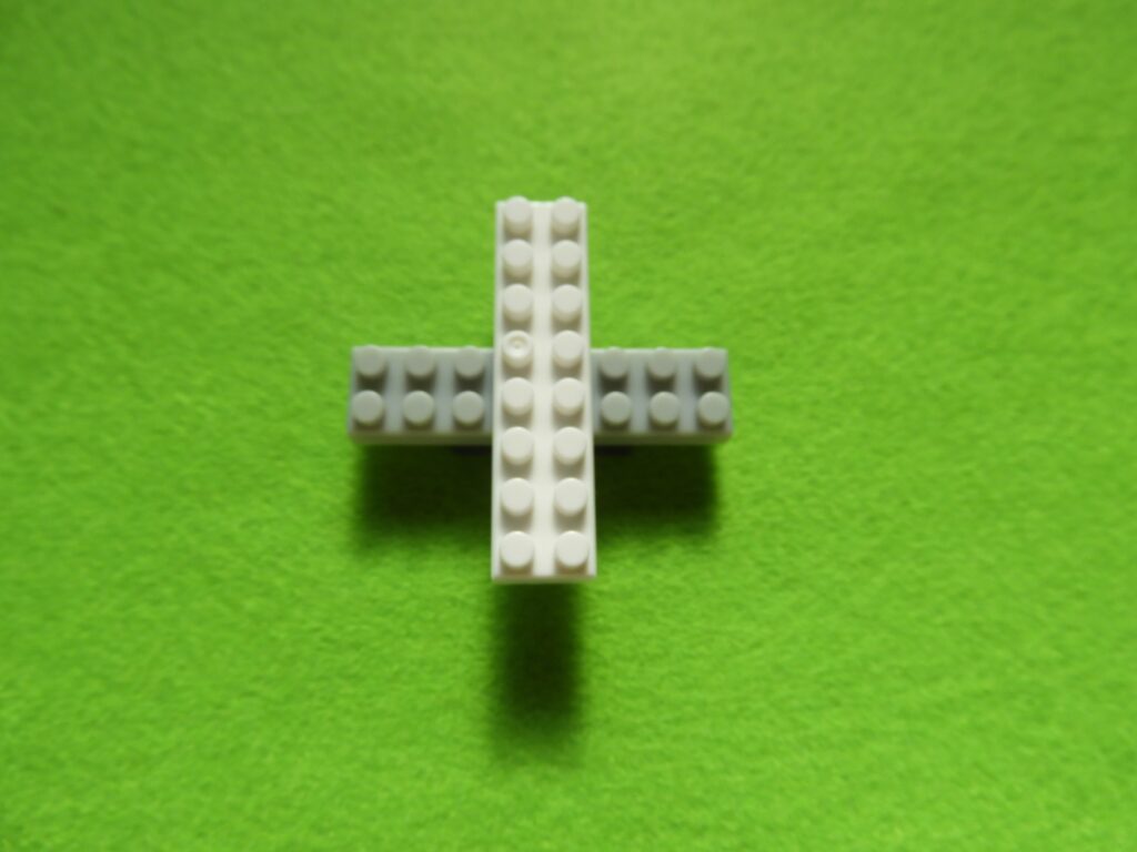 2.上記で組み立てたブロックの上に、白ブロックを十字になるようにのせます。
