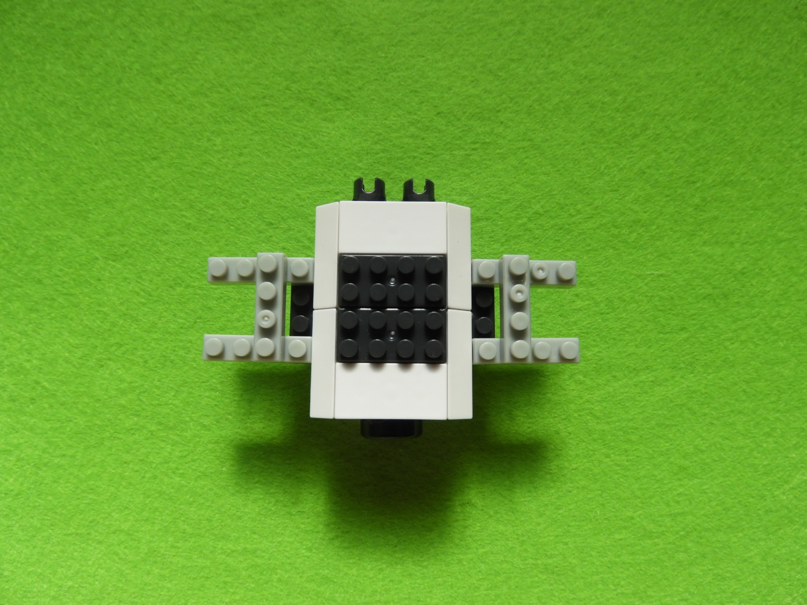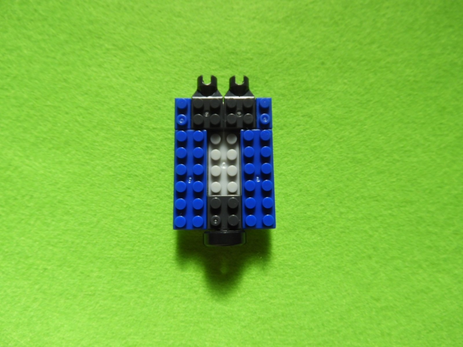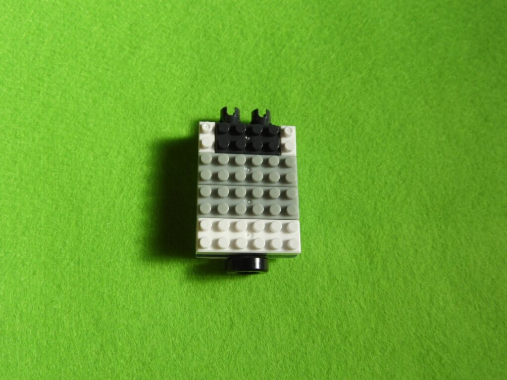 2.3段目のブロックの上に、上記で組み立てた長方形ブロック(ソーラーパネル)をのせると工程5番は完成します。
