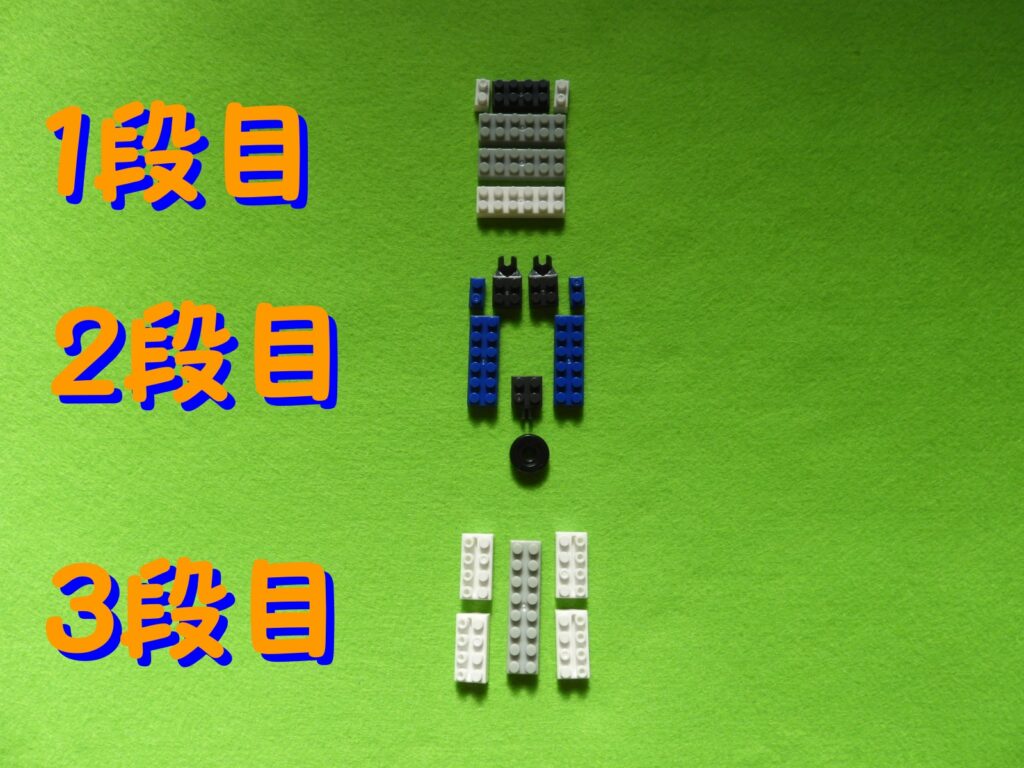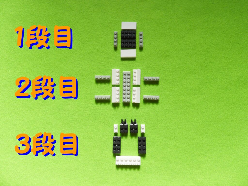2.上記で組み立てたブロックの上に、1段目のブロックをのせると工程1番は完成します。