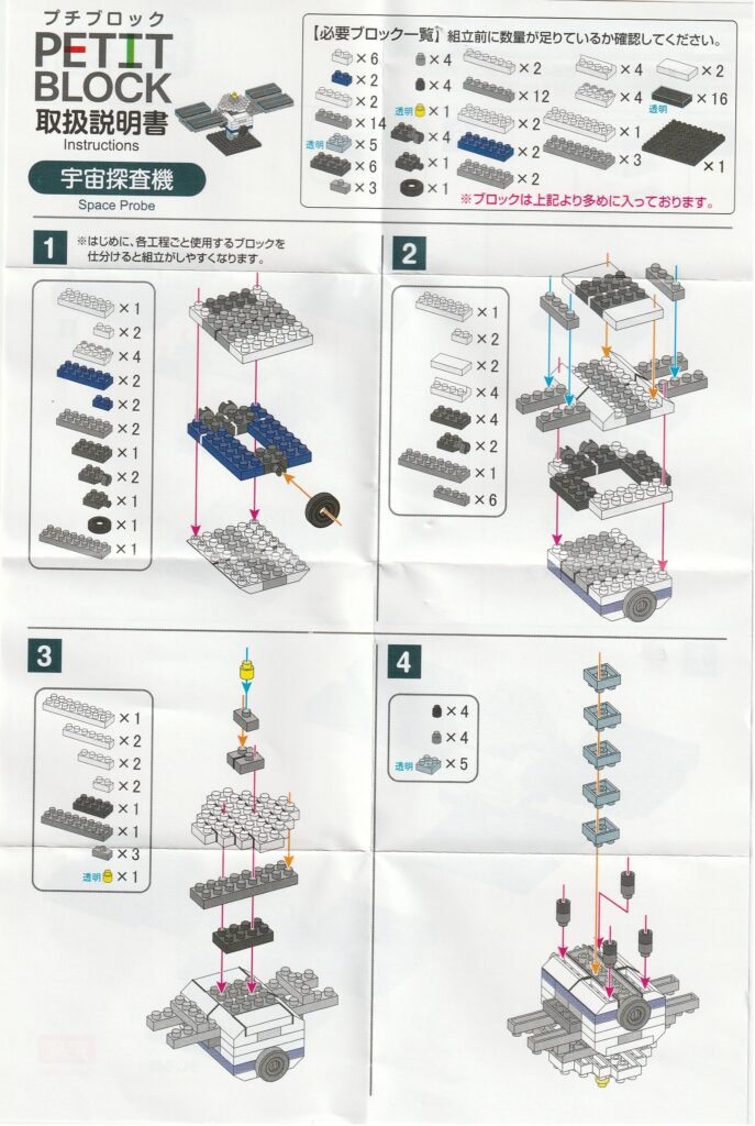 宇宙探査機の取扱説明書ものせておきましたので確認しながら作ってくださいね♪